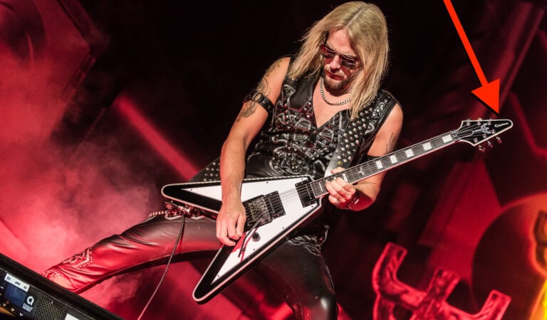 During his recent chat with Ultimate Guitar, Judas Priest axeman Richie Faulkner revealed that the Epiphone guitars that he’s using live are exactly the same as those that you could originally get in a guitar store. This means that they’ve not been, in any way, altered or modded, at least according to his words. These were, however, the limited edition run and were a bit more expensive than usual. You can find them used today but they’re getting a bit pricy on the used market.